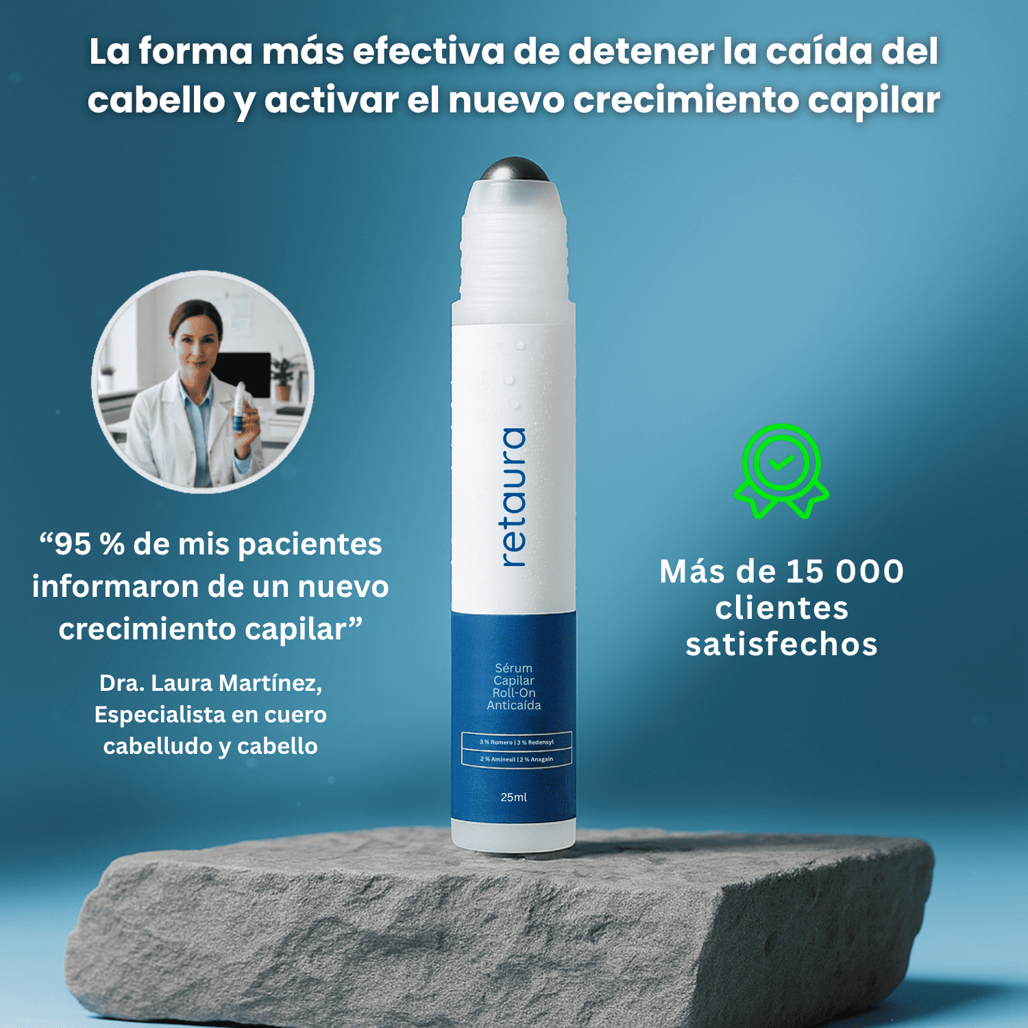 Retaura ha sido clínicamente probado y recomendado por reconocidos dermatólogos y tricólogos en España. Miles de usuarios ya han utilizado el Retaura™ Sérum Capilar Roll-On Anticaída para detener la caída del cabello y reactivar el crecimiento natural del pelo.
