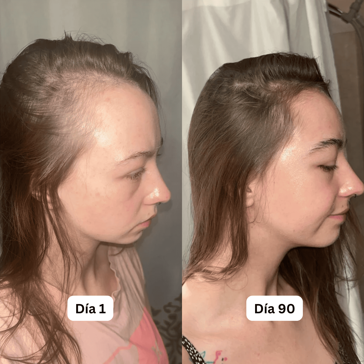 La mayoría de los usuarios nota una reducción de la caída del cabello en dos semanas y nuevo crecimiento a partir de los 30 días. Para obtener resultados óptimos, recomendamos un uso continuo durante tres meses para apoyar completamente el ciclo natural de crecimiento del cabello.